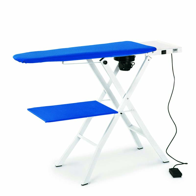 Folding ironing table with electrically heated board and built-in vacuum unit. Schuko plug.