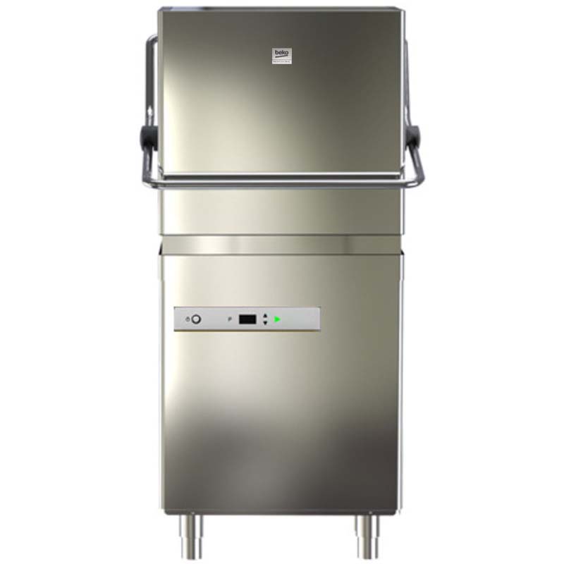 High Line Hood machine with LCD user interface. 4 powerful washing programmes. Double-panel wash tank. Built-in rinse aid dosing. Detergent dosing. Hi-Energy efficiency system. Drain pump. Stainless steel rinsing arm. Upper washing arm. Automatic drain. Automatic softner.